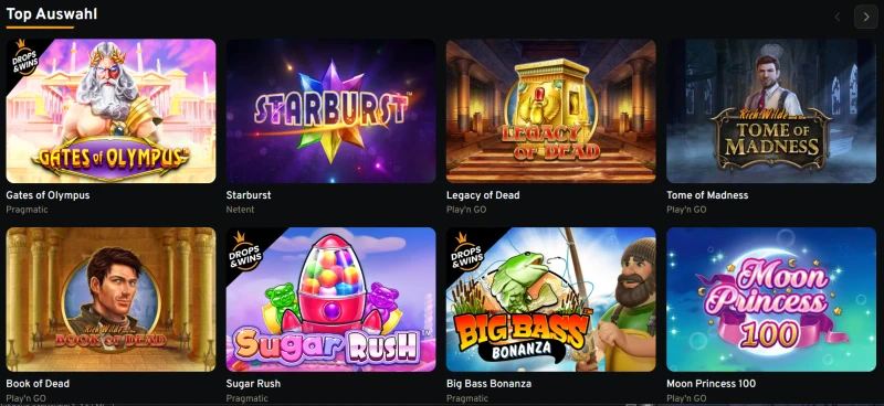Statt eines kleinen, statischen Katalogs betrittst du eine dynamische Bibliothek mit über 2.700 Casinotiteln, wobei Spielautomaten im Mittelpunkt stehen. Von hochvolatilen Abenteuern bis zu entspannten Spielen mit niedrigen Einsätzen kannst du Stil und Tempo innerhalb von Sekunden wechseln, ohne deine Komfortzone zu verlassen.